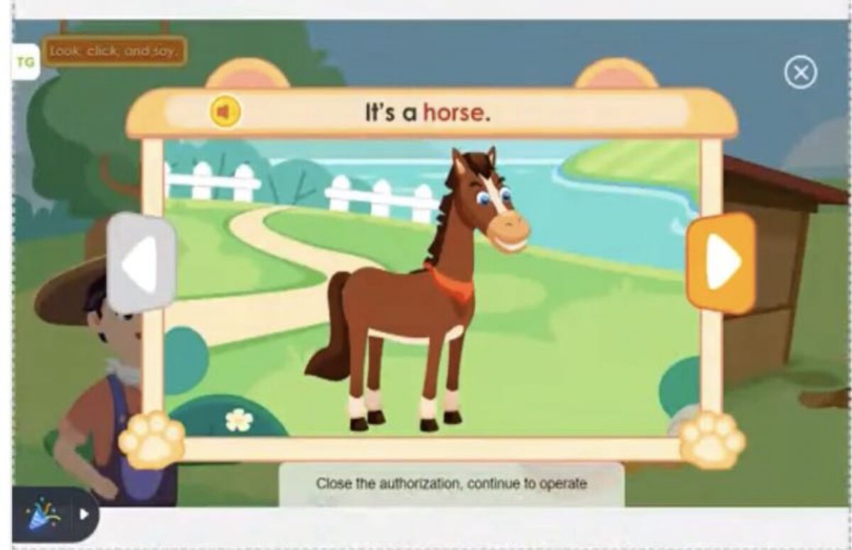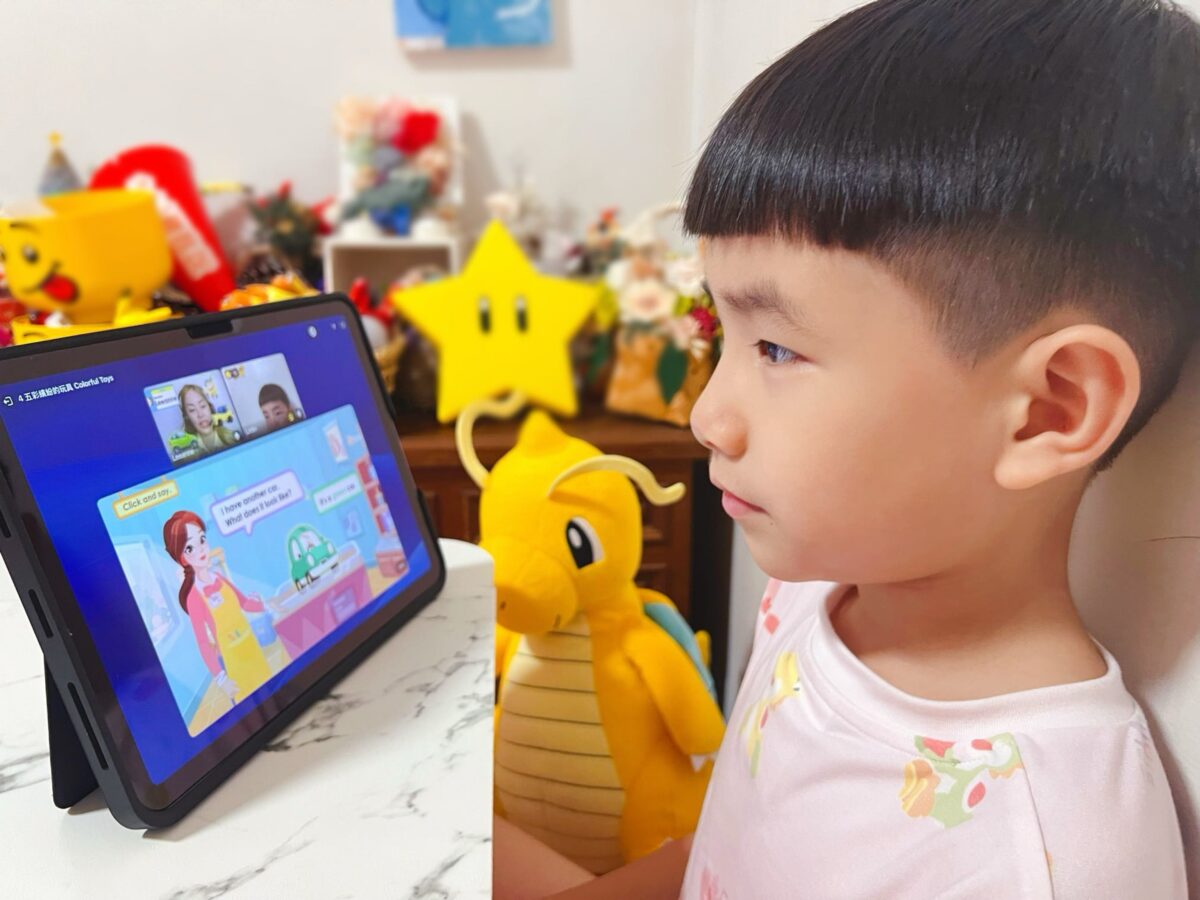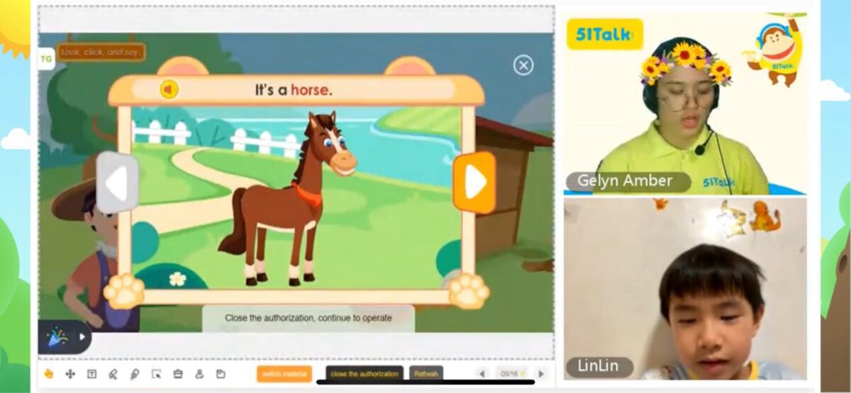 幕上出現熟悉的農場場景,老師笑著跟林林說:「It’s a horse!」,林林一開始小聲聲地跟著念,老師不急不躁,會誇獎:「Good job!」「Great!」還比手勢帶著孩子一起說,在老師耐心鼓勵下,慢慢開始大聲回答,甚至會跟著老師一起笑。這堂課讓我看到他 從「聽得懂」到「敢開口」的轉變。