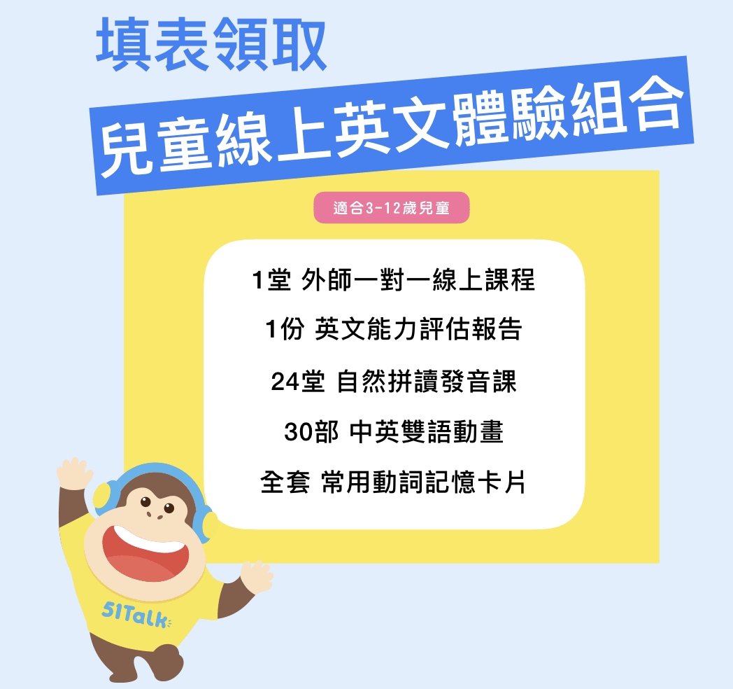 51Talk現在免費申請外師 1 對 1 體驗課,完成試聽就送學習大禮包!